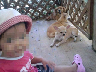 小型犬なので、娘を怖がって逃げてた…でも負けない娘。